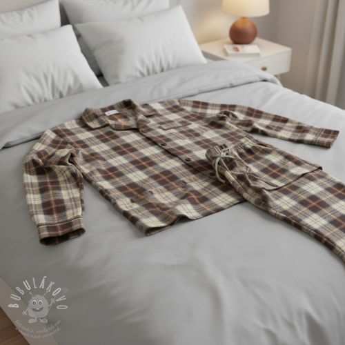 Bavlněná látka YARN DYED CHECK BRUSHED brown