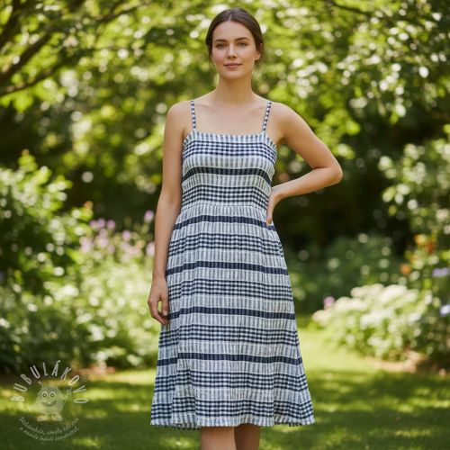 Bavlněná látka YARN DYED Stripe navy