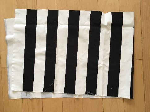 -hlavný diel 45cm dĺžka plus na zašitie x 135cm šírka plus na zašitie (šírka sa vyráta ako dĺžka x 3, čiže 45 x 3=135, potom prirátame ku každej strane na zašitie 2cm. Takže výsledný obdĺžnik s dvojitým zahnutím na zašitie mal 49 x 139 )