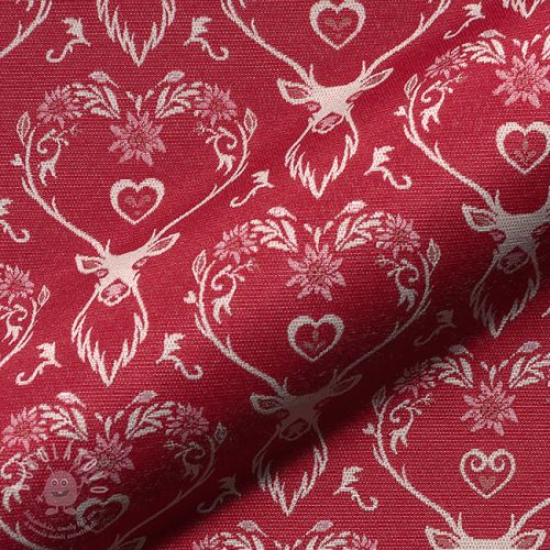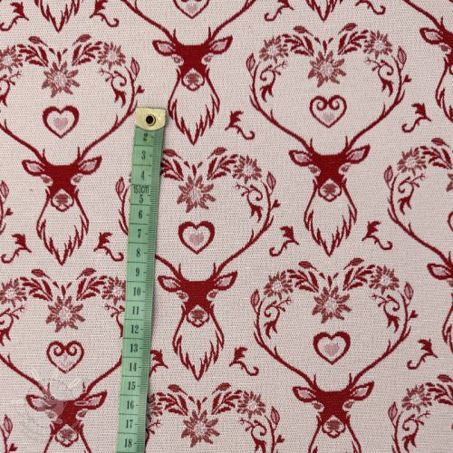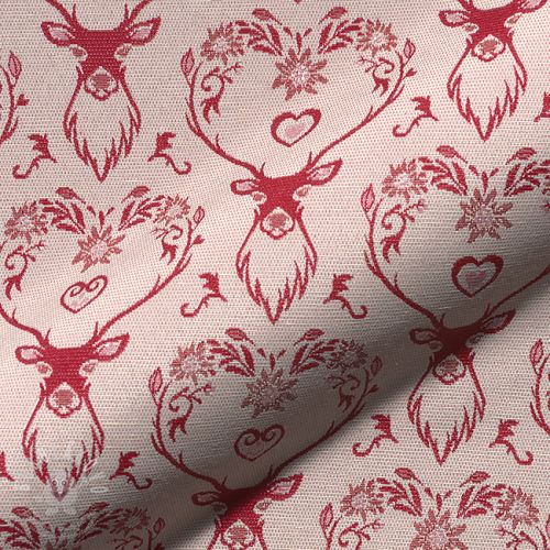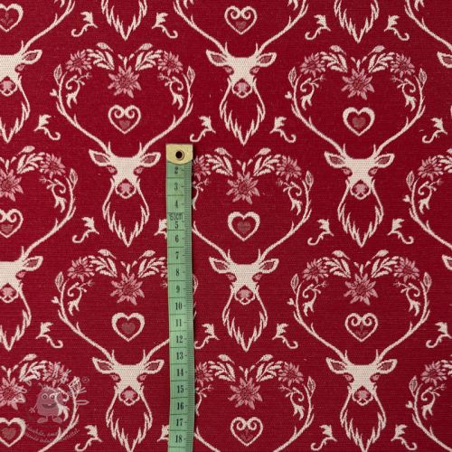 Dekorační látka jacquard DOUBLE FACE Landhaus Deer Heart dark red