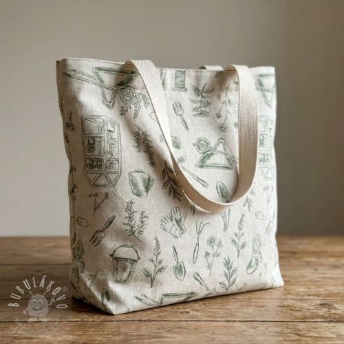 Dekorační látka Linenlook Garden Plant Tool digital print