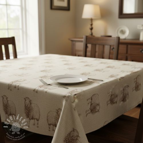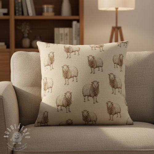Dekorační látka Linenlook Pen Drawing Sheep digital print