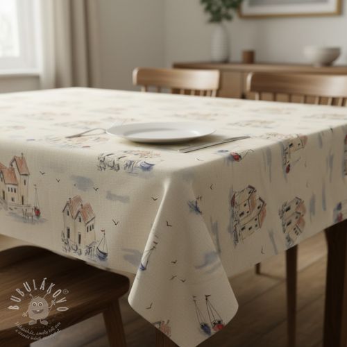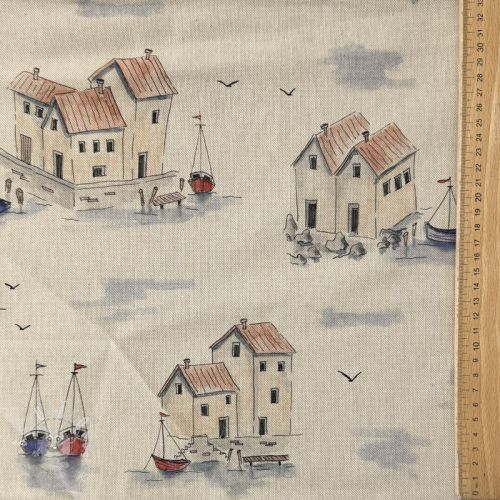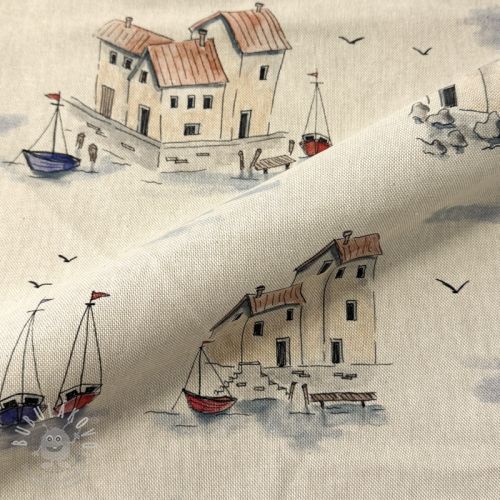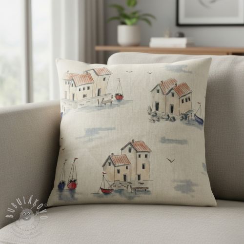 Dekorační látka Linenlook Seaside House View digital print