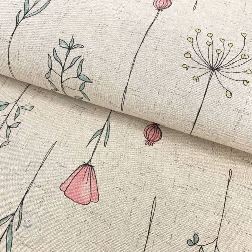 Dekorační látka Linenlook Handdrawn flowers