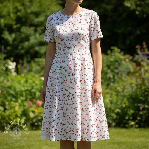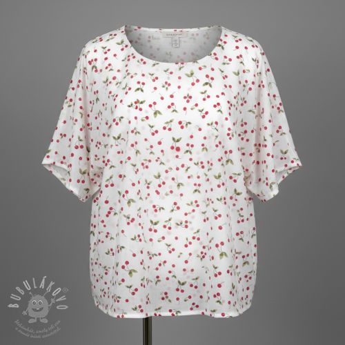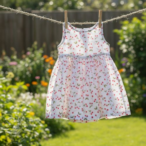 Dvojitá gázovina/mušelín Cherries white digital print
