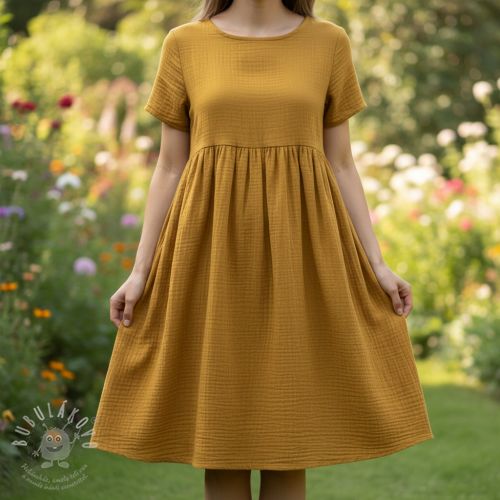 Dvojitá gázovina/mušelín dark ochre ORGANIC
