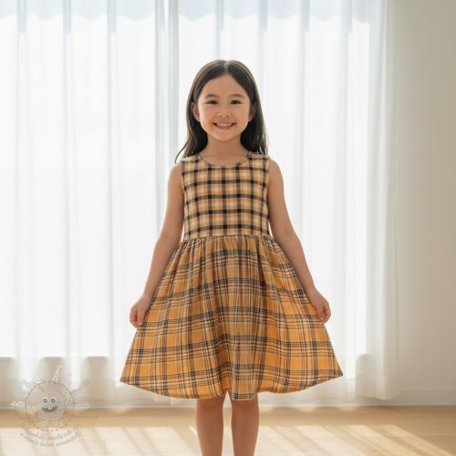 Dvojitá gázovina/mušelín Double sided CHECKS multicolour brown