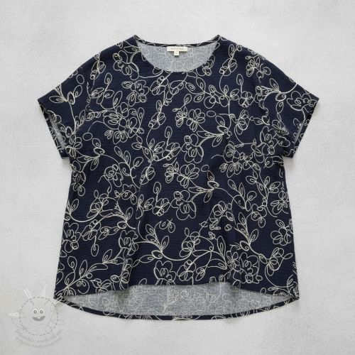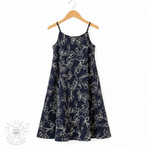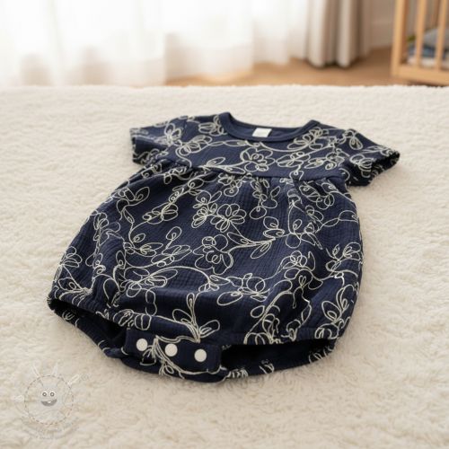Dvojitá gázovina/mušelín EMBROIDERY Climbing flowers navy