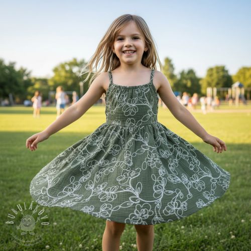 Dvojitá gázovina/mušelín EMBROIDERY Climbing flowers pickle