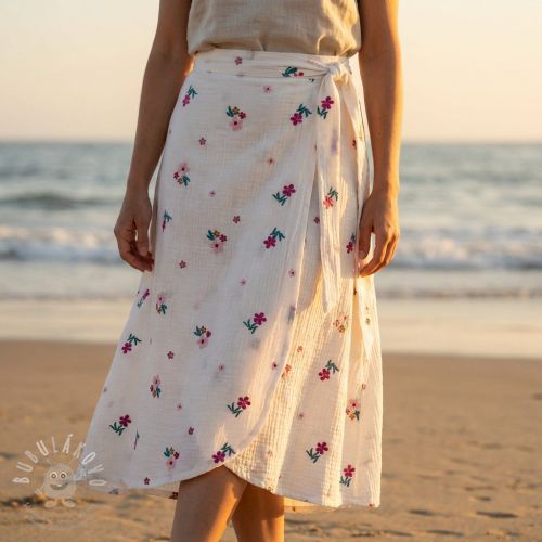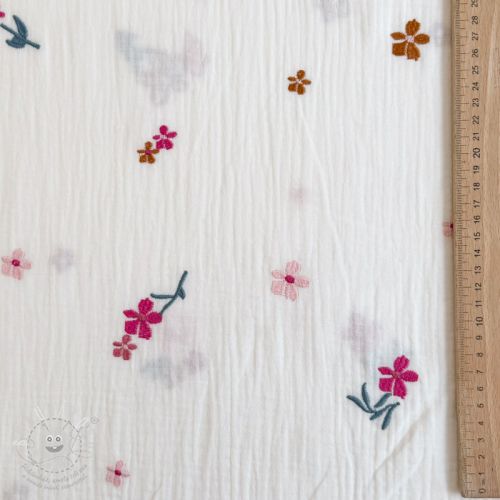 Dvojitá gázovina/mušelín EMBROIDERY Flowers MIA camel