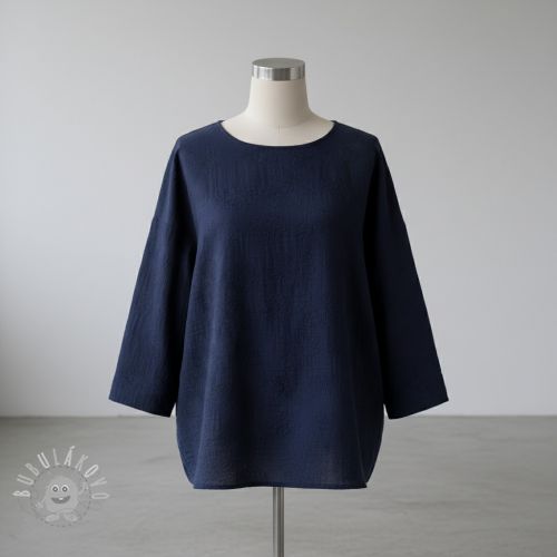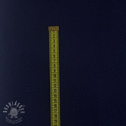 Dvojitá gázovina/mušelín EMBROIDERY Flowers navy