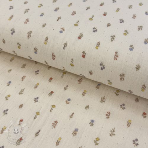 Dvojitá gázovina/mušelín Flowers Mia digital print ORGANIC