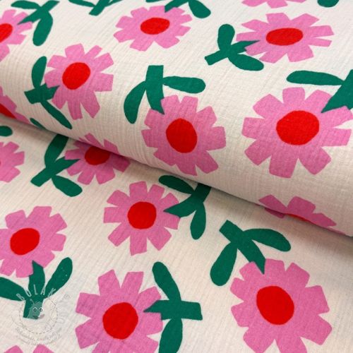 Dvojitá gázovina/mušelín Flowers natural/pink by JENNIFER BOURON ORGANIC