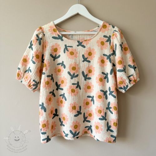 Dvojitá gázovina/mušelín Flowers peach by JENNIFER BOURON ORGANIC