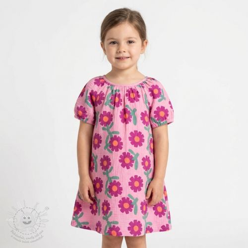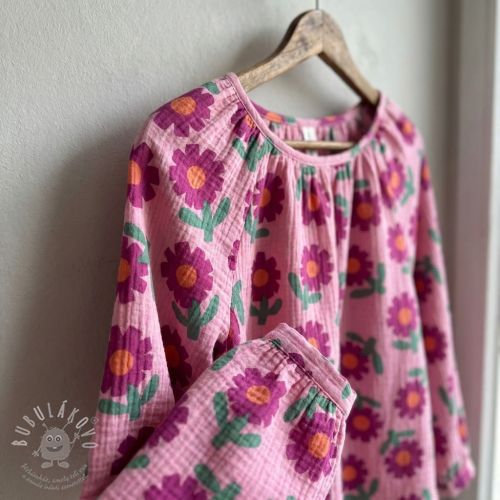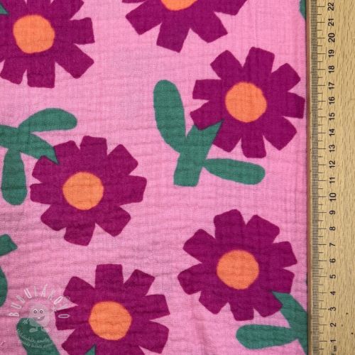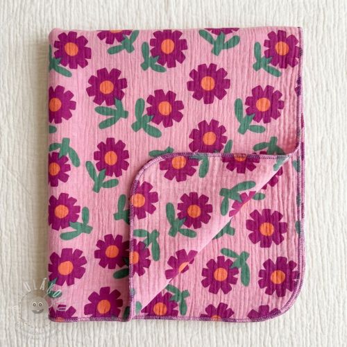 Dvojitá gázovina/mušelín Flowers pink by JENNIFER BOURON ORGANIC