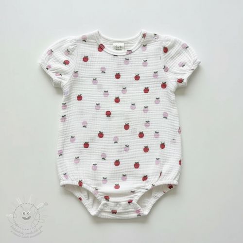 Dvojitá gázovina/mušelín Fruits apple white