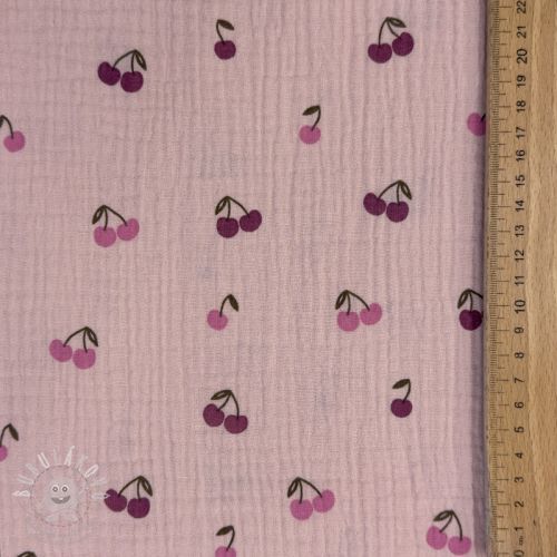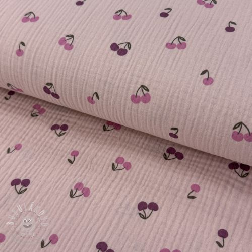 Dvojitá gázovina/mušelín Fruits cherry soft rose