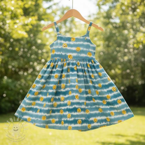 Dvojitá gázovina/mušelín Happy faces jeans digital print