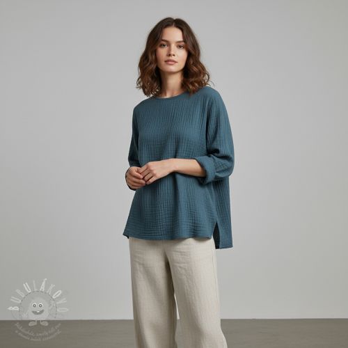 Dvojitá gázovina/mušelín dark teal ORGANIC