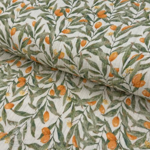 Dvojitá gázovina/mušelín Leaves off white digital print