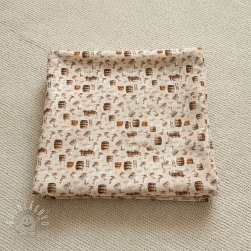 Dvojitá gázovina/mušelín Little farm animals design D digital print