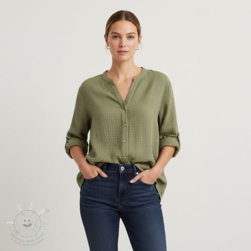 Dvojitá gázovina/mušelín moss green ORGANIC