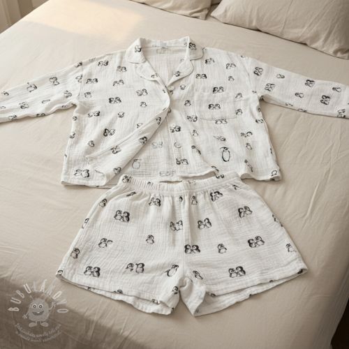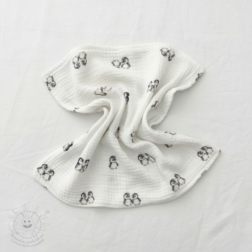 Dvojitá gázovina/mušelín Penguin white digital print ORGANIC