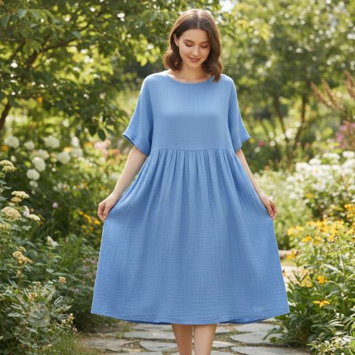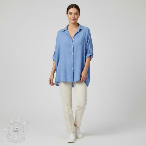 Dvojitá gázovina/mušelín royal blue ORGANIC