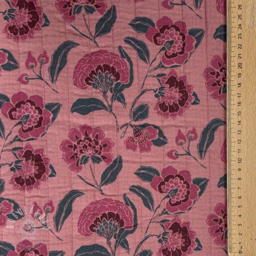 Dvojitá gázovina/mušelín STEPPED Flowers mauve