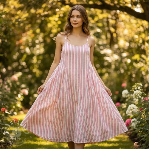 Dvojitá gázovina/mušelín YARN DYED Stripe in stripe pink