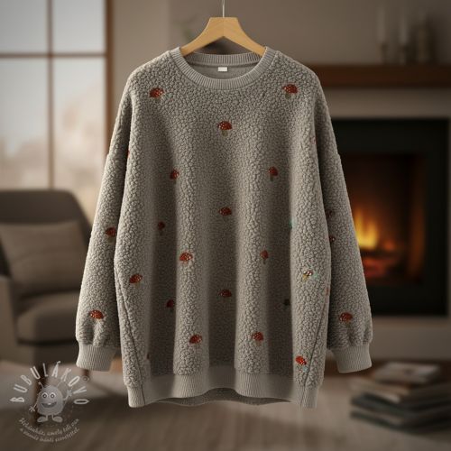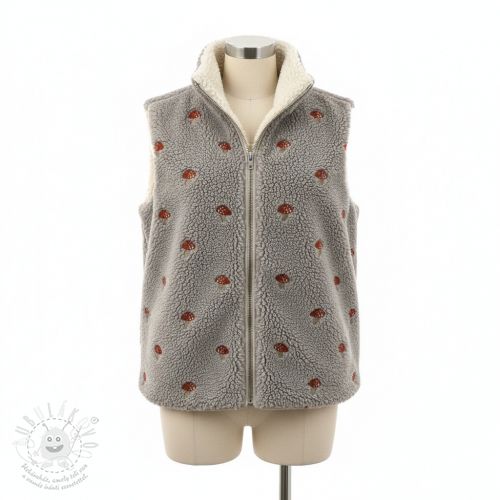 Kabátovina EMBROIDERY Little mushrooms pebble