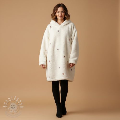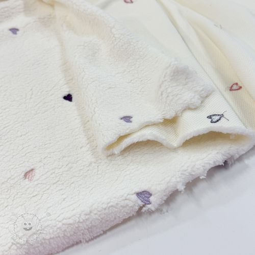 Kabátovina TEDDY EMBROIDERY Hearts ecru