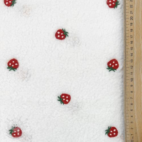 Kabátovina TEDDY EMBROIDERY Strawberries white