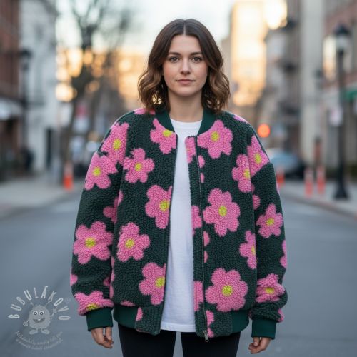 Kabátovina TEDDY JACQUARD Flowers army green/pink