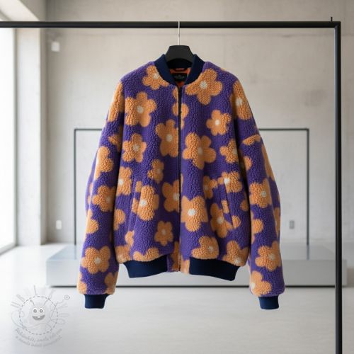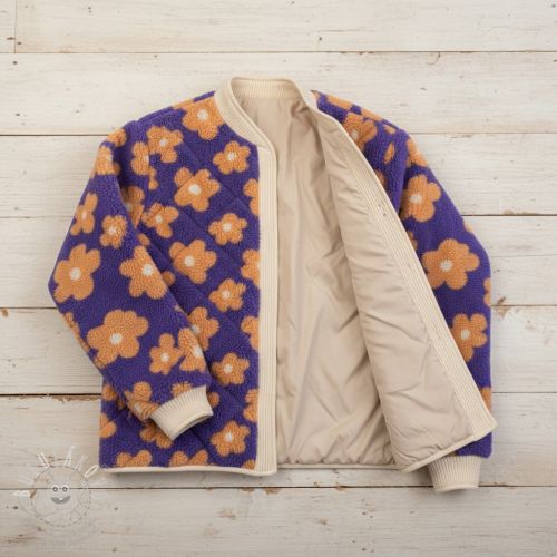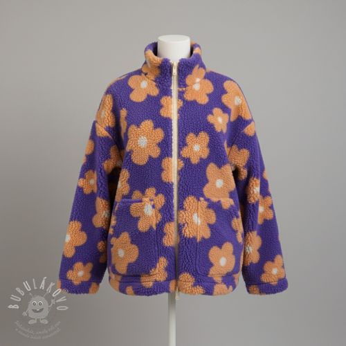 Kabátovina TEDDY JACQUARD Flowers lilac/apricot