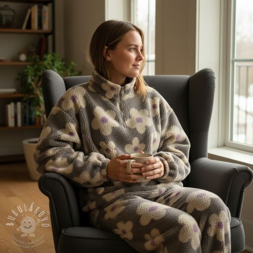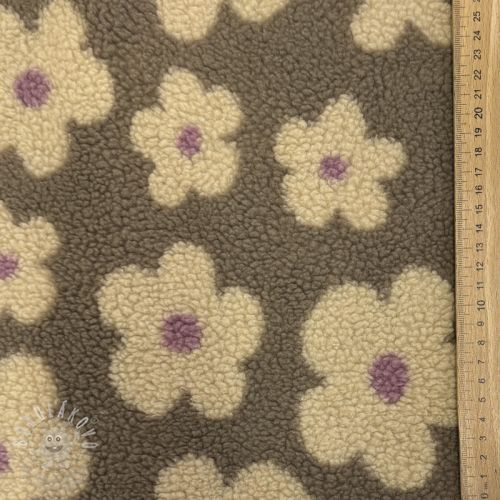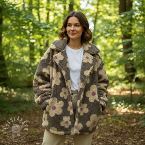 Kabátovina TEDDY JACQUARD Flowers taupe/beige