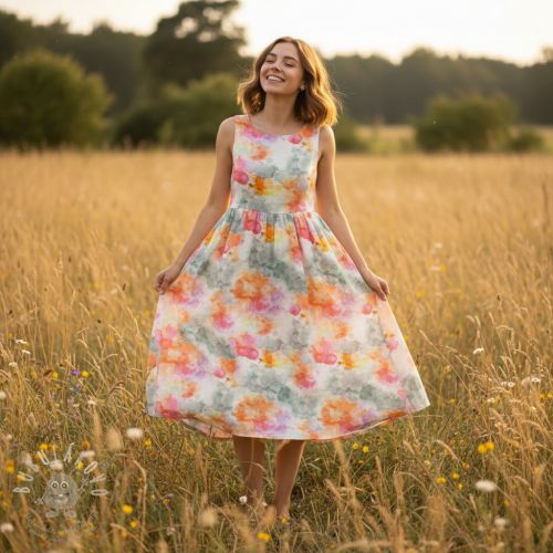 Len s bavlnou Abstract flowers RAMIE orange digital print