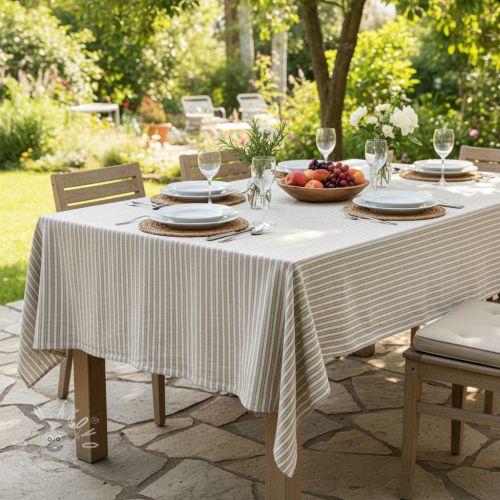 Len s bavlnou Lira medium stripe beige
