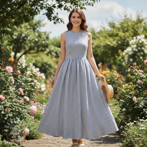 Len s bavlnou Lira mini stripe beige