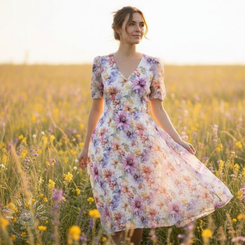 Len s bavlnou Peony roses RAMIE light pink digital print