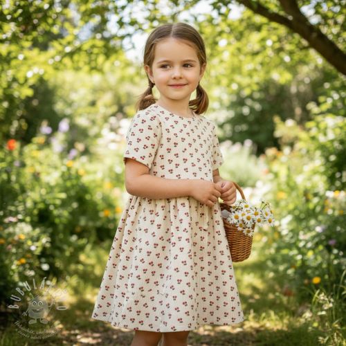 Manšestr STRETCH Little strawberries light sand
