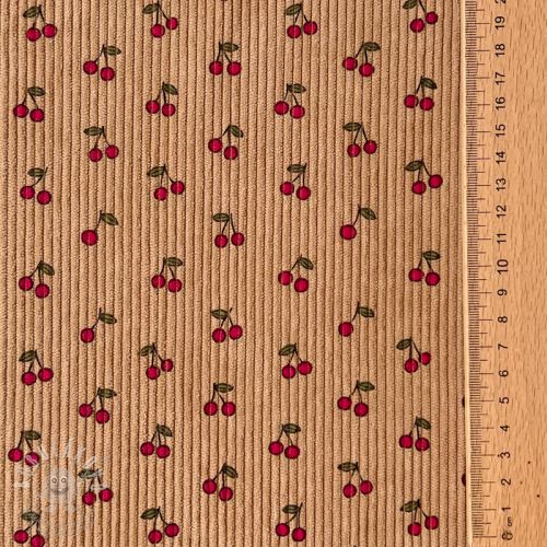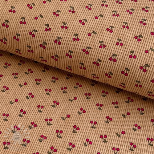 Manšestr STRETCH Little cherry light sand