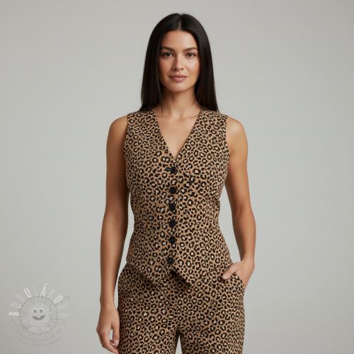 Manšestr STRETCH Little Leopard taupe
