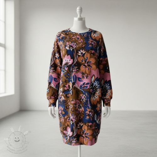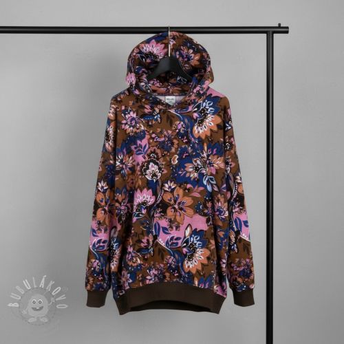 Teplákovina Flowers Mici brown digital print