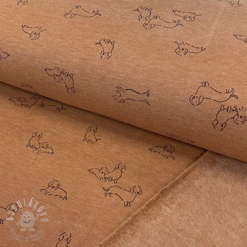 Teplákovina počesaná Dogs camel melange