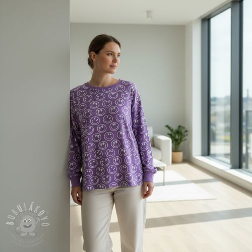 Úplet Happy faces lavender digital print