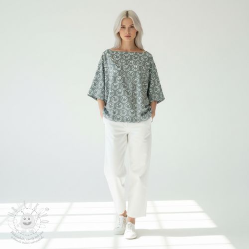 Úplet Happy faces sage digital print