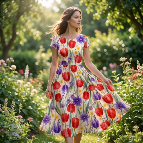 Úplet VISCOSE LYCRA HEAVY Tulips design E