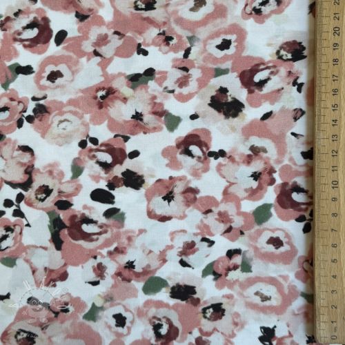 Viskóza POPLIN STRETCH Flowers white digital print