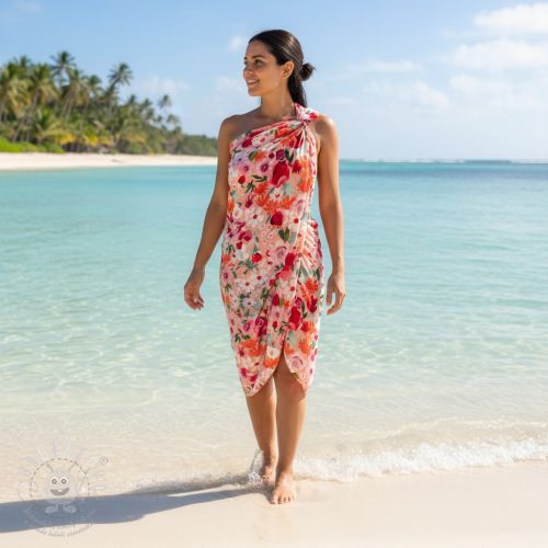 Viskóza SATIN Red flowers digital print